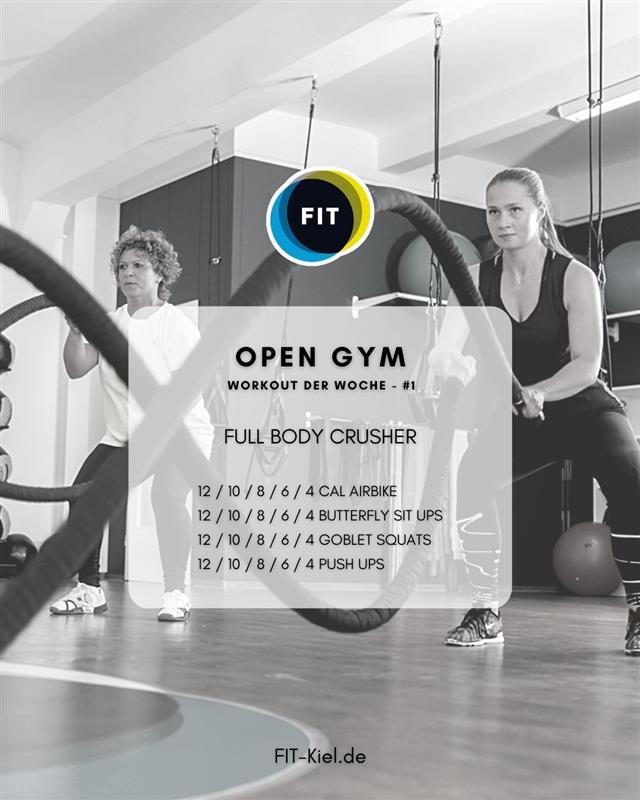Hier findest du verschiedene Workouts für unsere mehr als 100 Open Gym Trainingszeiten in Kiel & Altenholz.